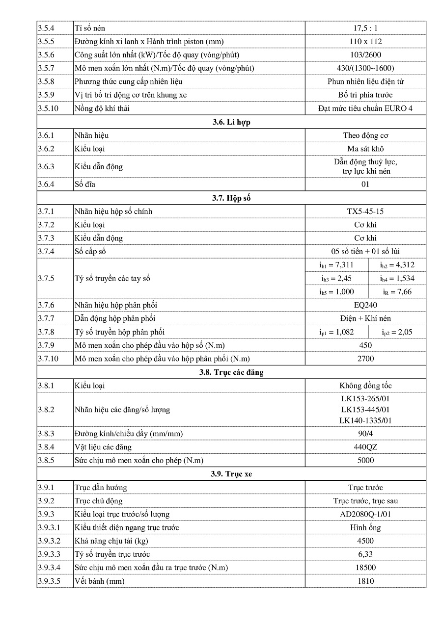 Tiêu chuẩn khí thải : EURO 4