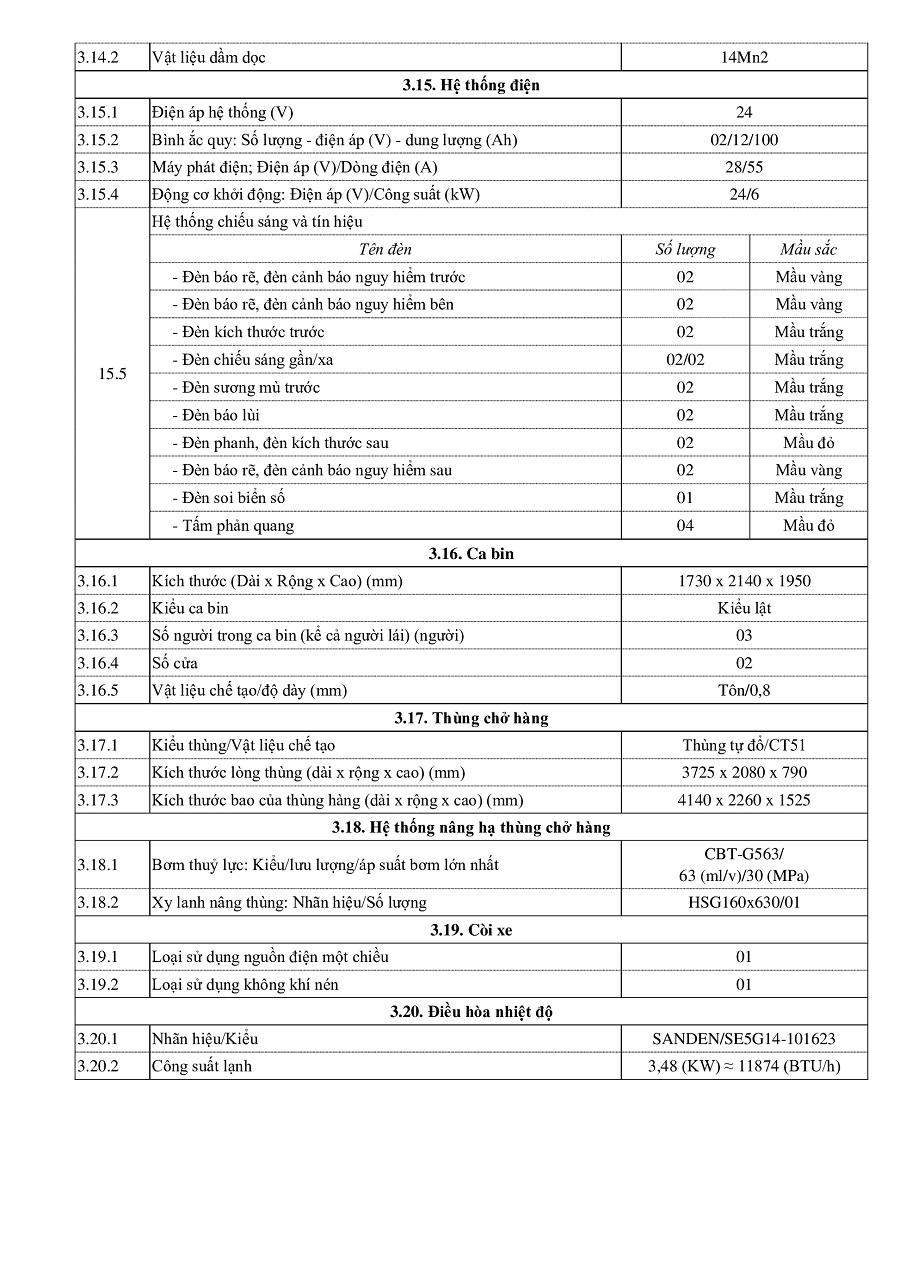 Động cơ : YC4E140-48 , 4 kỳ, 4 xi lanh thẳng hàng, tăng áp