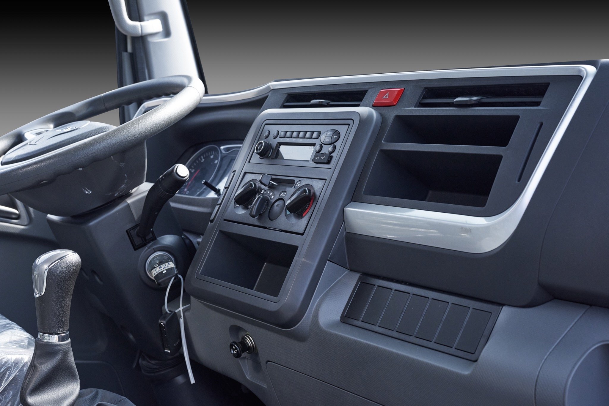 - Bên trong cabin thiết kế rộng rãi, đủ chỗ 03 người ngồi, các nút điều khiển chức năng bố trí khoa học nằm trong tầm với của tay, chìa khóa điều khiển từ xa, kính chỉnh điện, hệ thống âm thanh sống động, điều hòa 2 chiều mát lạnh và hệ thống chiếu sáng nhằm thuận tiện nhất cho người điều khiển, ….tất cả được thiết kế như xe du lịch.