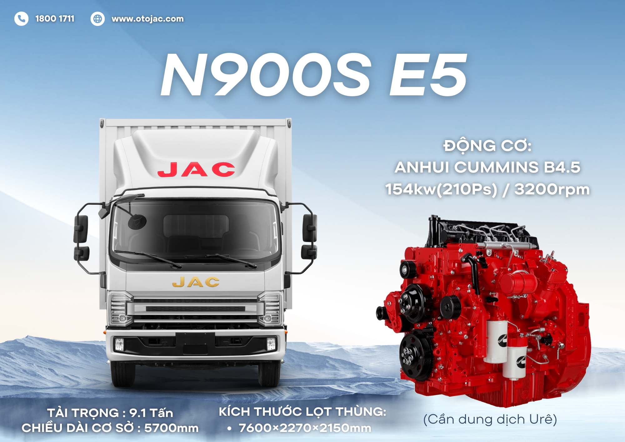 JAC N900S PLUS của JAC với tư cách là một thương hiệu xe tải nhẹ cao cấp mang tầm Quốc Tế, có trang bị động cơ B4.5EV210, không chỉ đạt được thỏa mãn tiêu chuẩn khí thải của Hoa Kỳ, Châu Âu, Trung Quốc, mà còn có những kỹ thuật tiên tiến như hệ thống phun dầu, khí nạp, hệ thống xử lý khí thải v.v, đẳng cấp hiện đại, dẫn đầu toàn cầu.