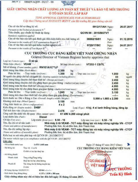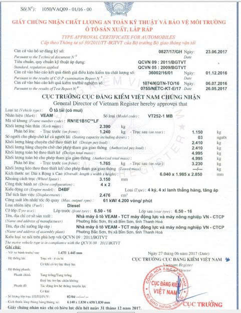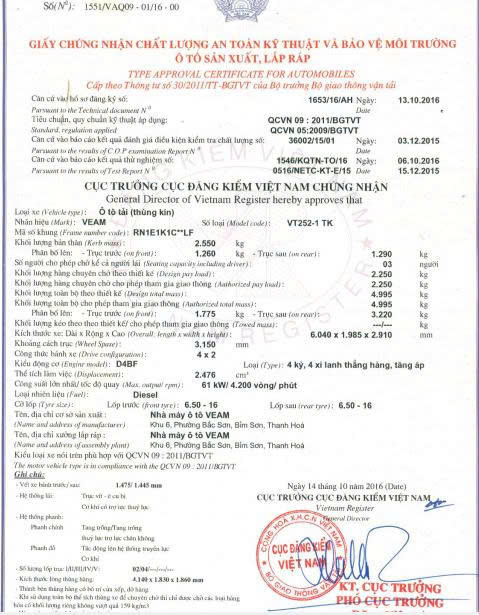 Số loại: VT252-1 Thùng bạt – Thùng kín- Thùng lửng