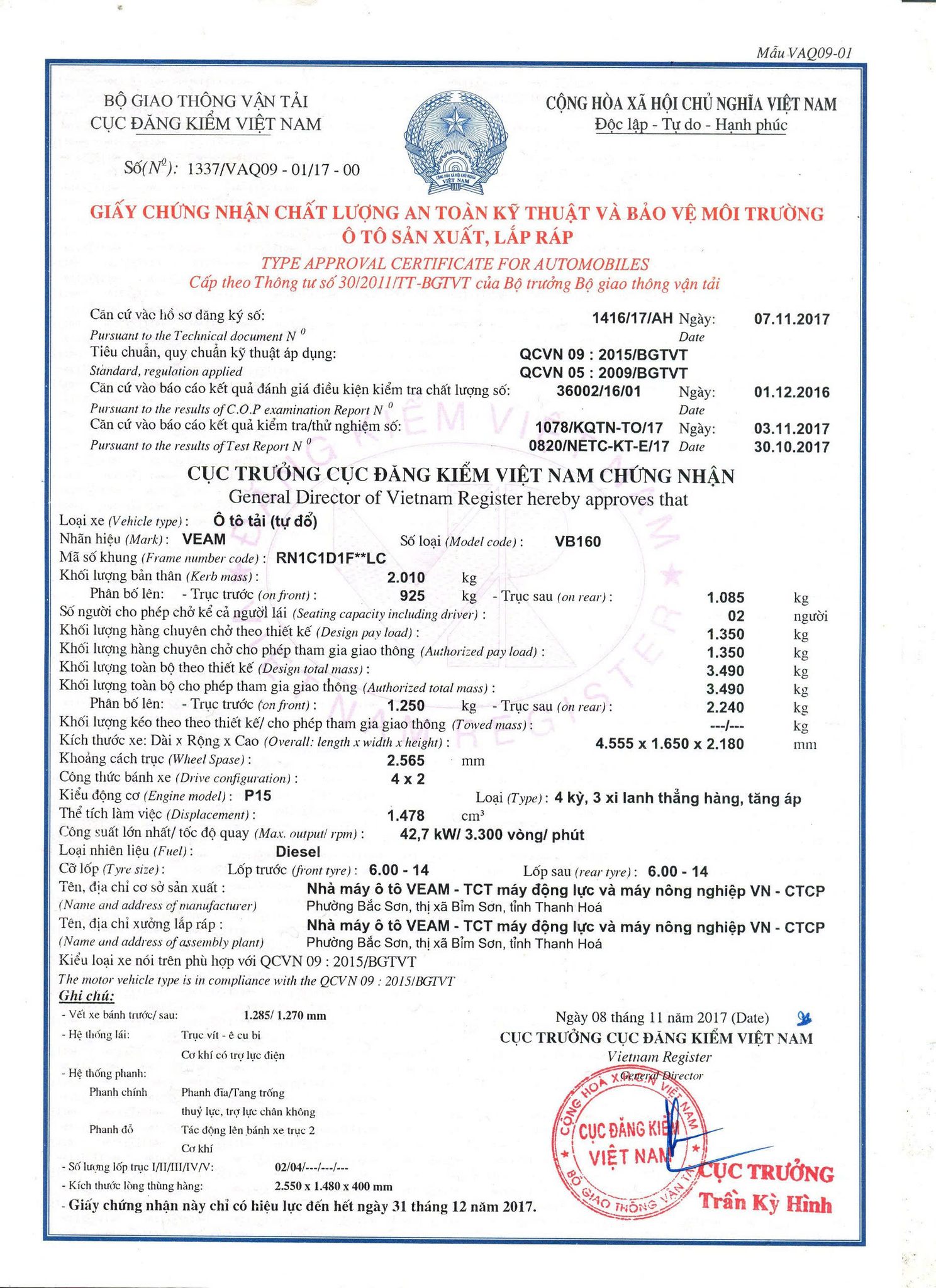 Nhà sản xuất: Nhà máy Veam – TCT máy động lực và máy nông nghiệp VN-CTCP