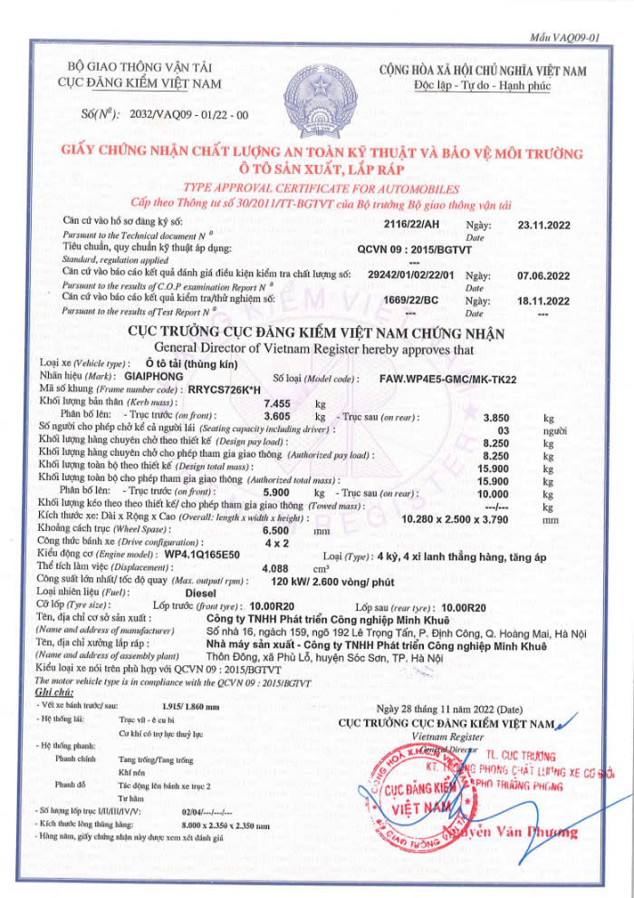 Nhà sản xuất: Công ty cổ phần ô tô Giải Phóng